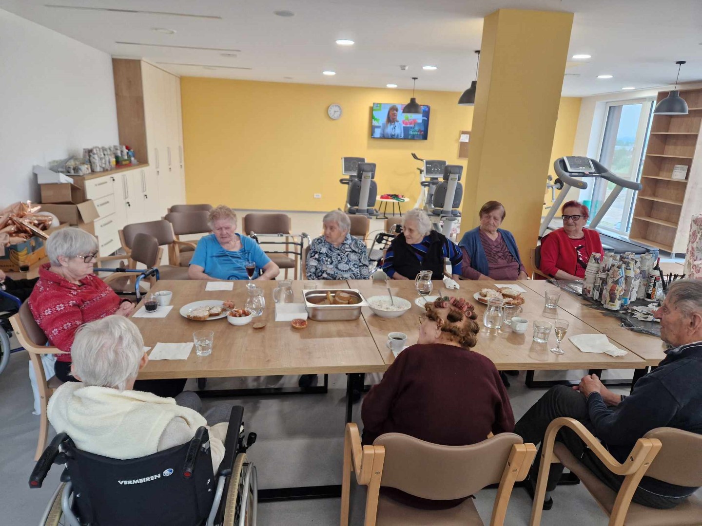 Kljub oblačnemu dnevu smo se danes zbrali v našem skupnem prostoru, kjer smo ustvarili pravo kulinarično delavnico, peka pica kruhkov.