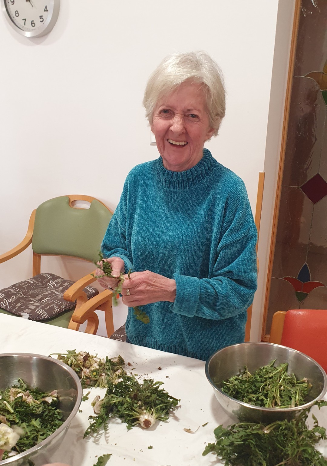 Ponedeljkovo kosilo smo imeli obogateno z najokusnejšo solato iz regrata. Naše stanovalke so regrat očistili in oprale, kuhinja pa pripravila.