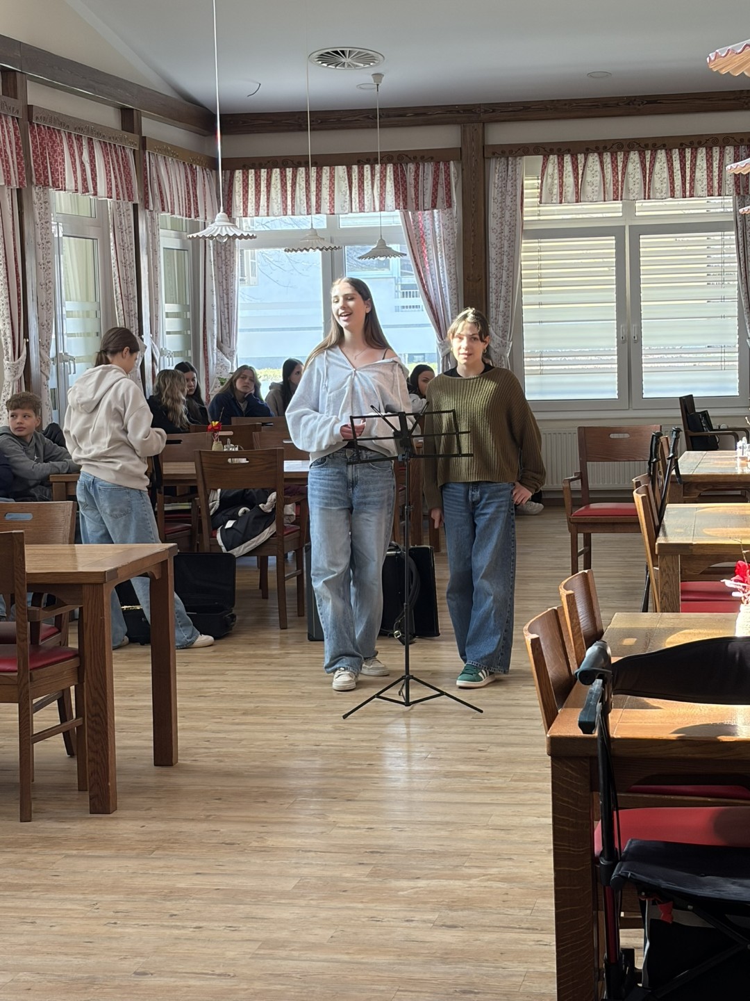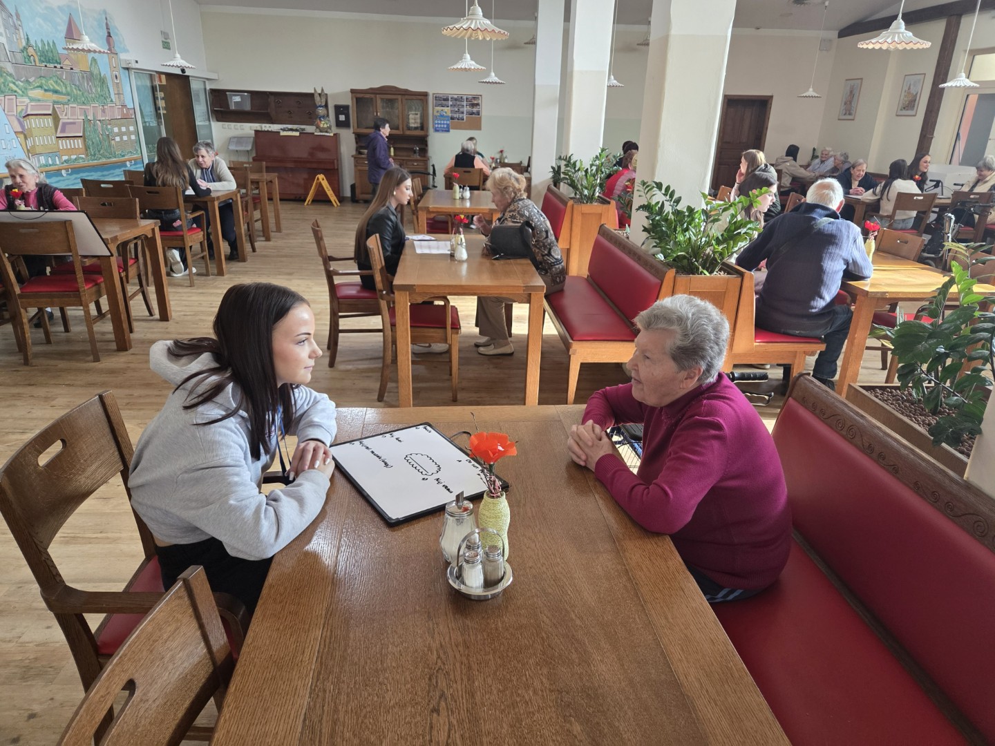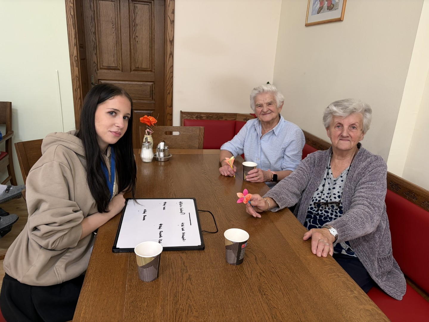 V sredo, 11. 3. 2026, so nam dijaki prostovoljci s šole za ekonomijo, turizem in kmetijstvo Ptuj skupaj z učenci Osnovne šole Olge Meglič pripravili prav posebno dopoldne. Učenci so nas razveselili z glasbenimi nastopi na harmoniki in saksofonu ter s petjem. Po glasbenem delu smo se udeleženci razdelili v pare z dijaki. Med sproščenim pogovorom smo se spoznavali, si izmenjali zanimive zgodbe in delili svoje izkušnje. Dopoldne je minilo v prijetnem druženju in medgeneracijskem povezovanju.