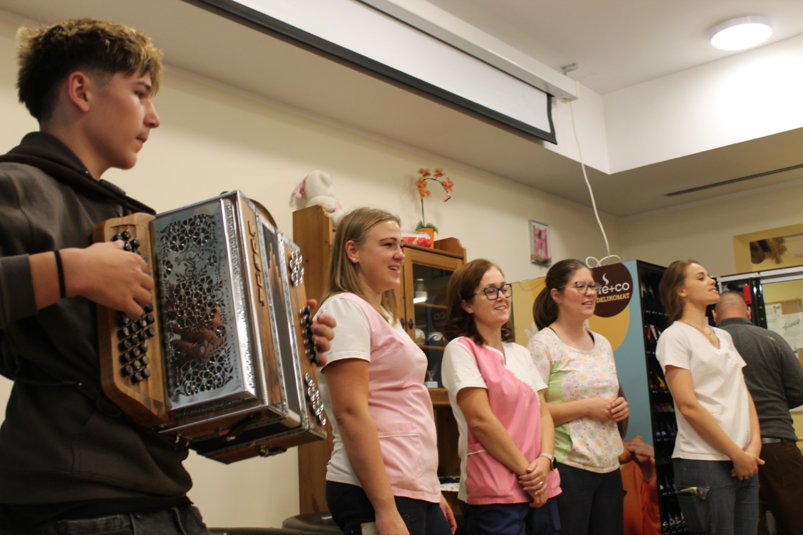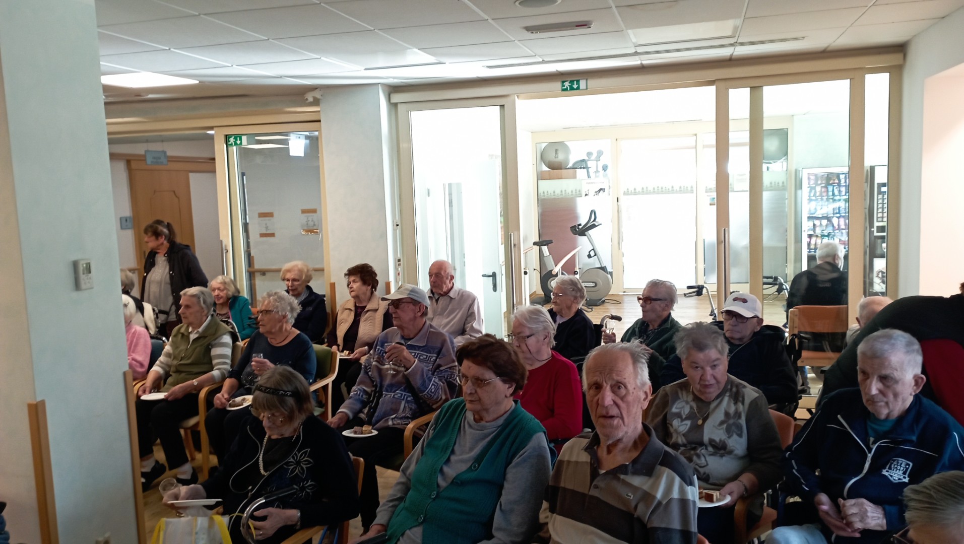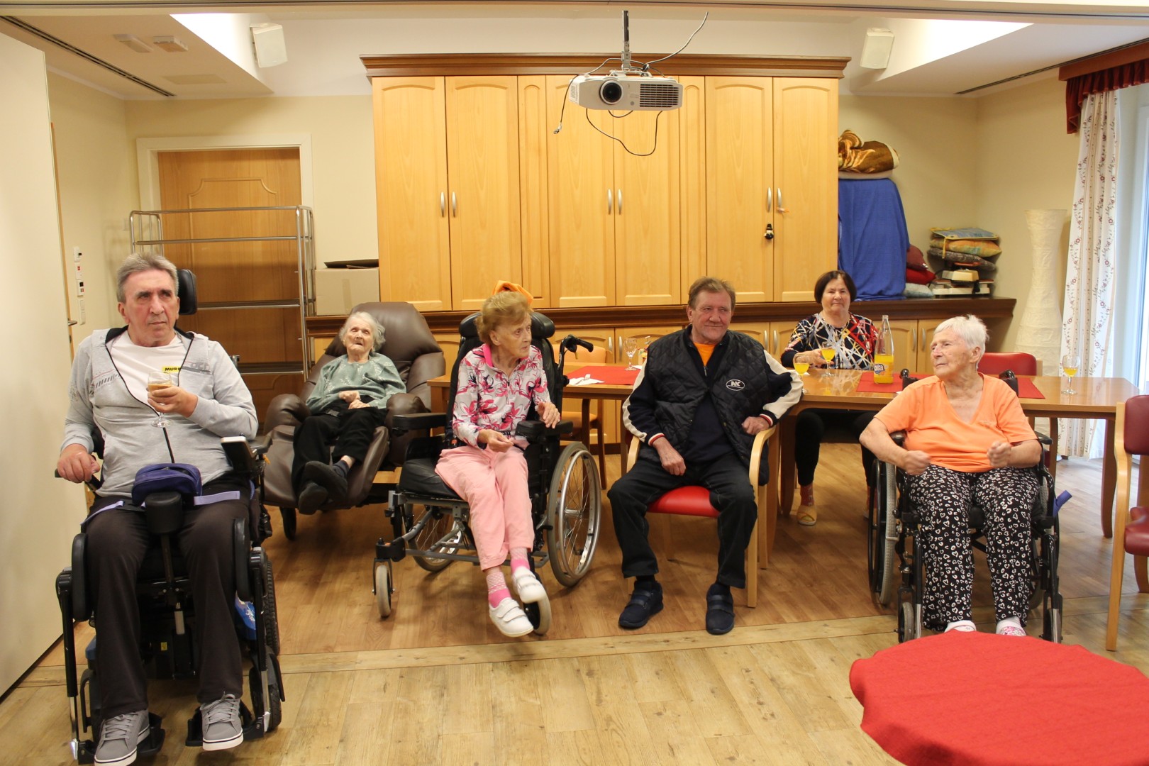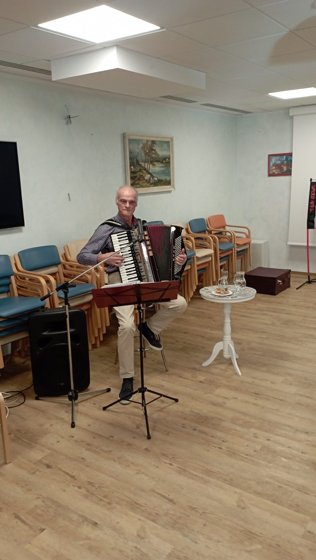 Ponovno smo plesali in prepevali ob zvokih harmonike našega muzikanta gospoda Janka. Vsak zadnji četrtek v mesecu imamo v enoti veselico, kot smo ta druženja poimenovali. Žena stanovalca mi je povedala: »Sem si označila na koledar, da ne bom pozabila priti. Z možem sva vedno rada plesala. Prva sva šla na plesišče in zadnja dol. Pridem, da zapleševa, dokler se bo še dalo.« Plesali smo skoraj vsi. Razvilo se je prav prijetno vzdušje. Veselimo se že zadnjega četrtka v novembru.