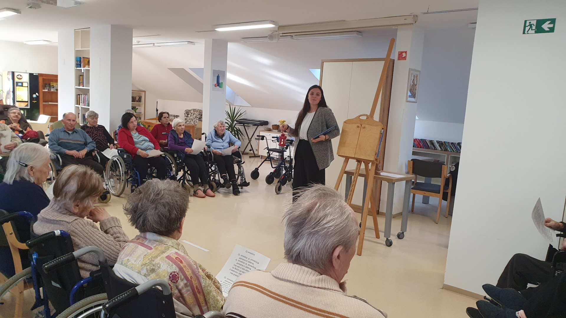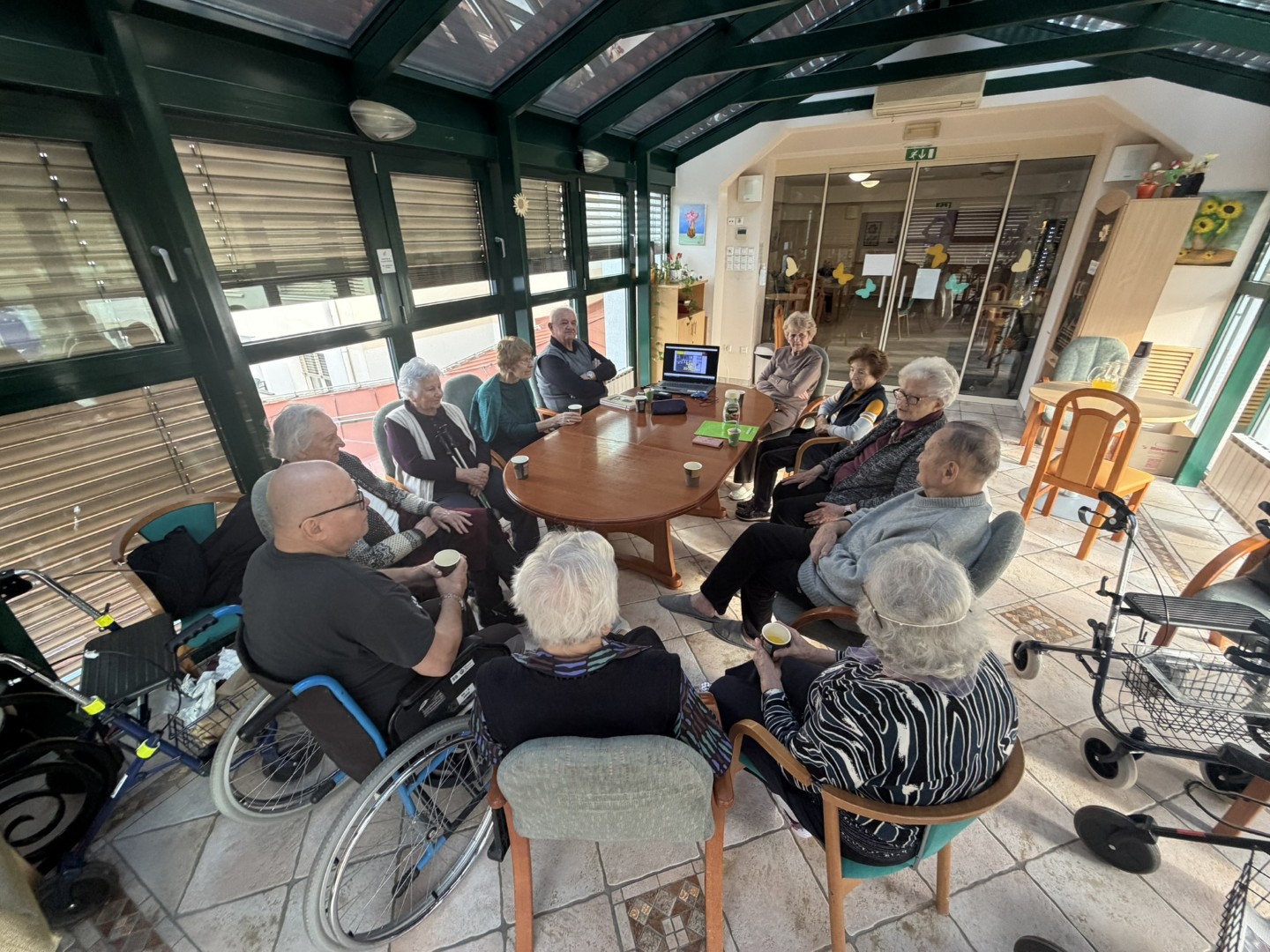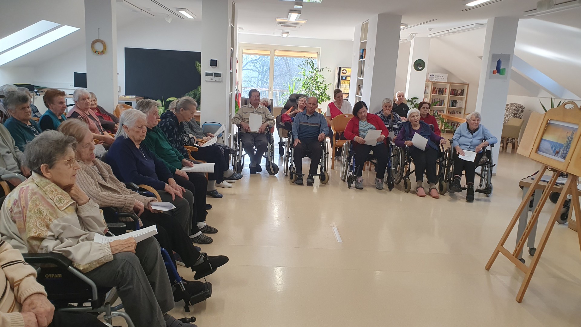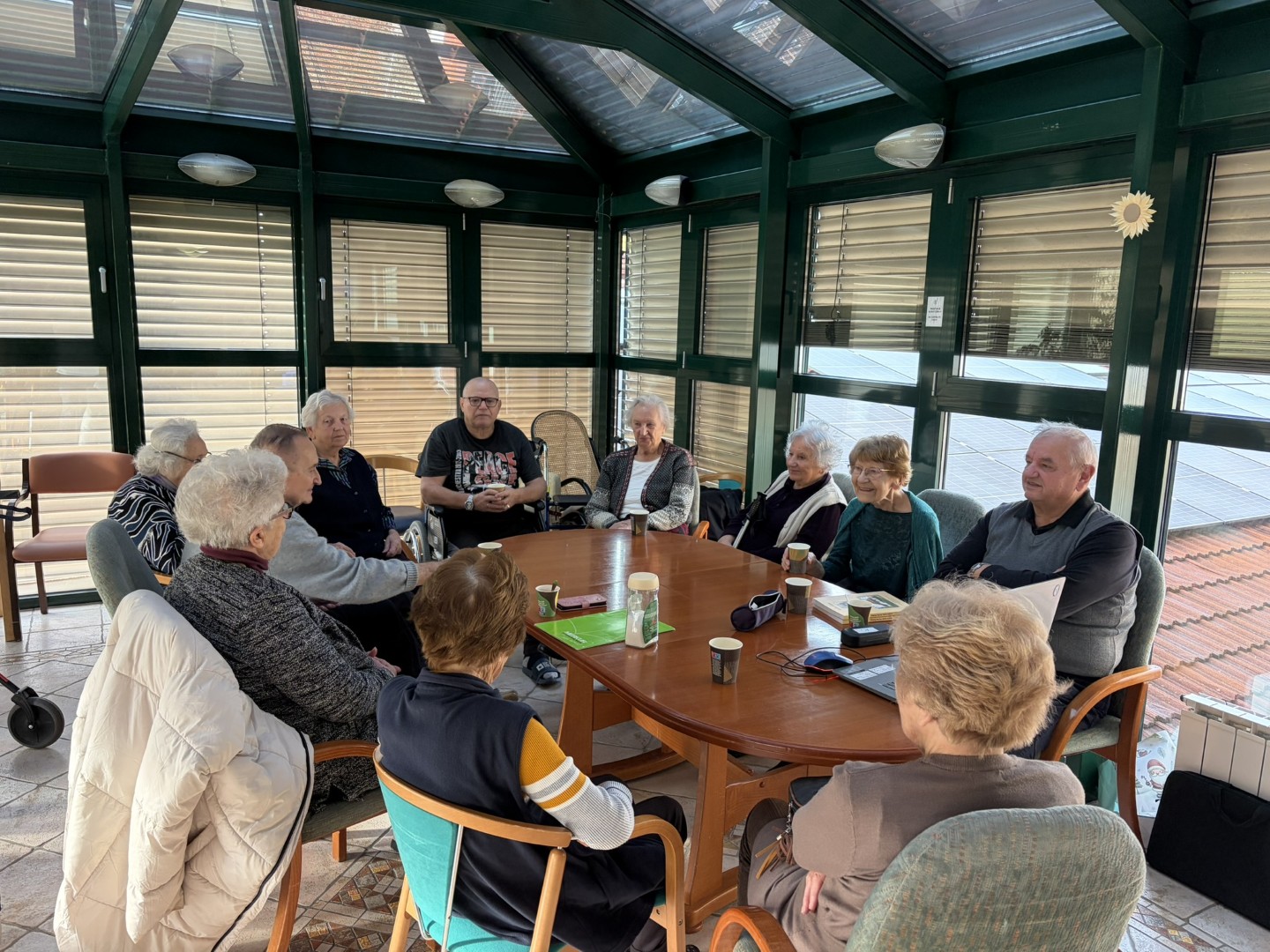 Naši stanovalci se vsak ponedeljek srečajo na literarnem krožku pod vodstvom prostovoljke Viktorije Dabič, kjer skupaj odkrivajo svet literature in se pogovarjajo o različnih literarnih temah. Tokratni ponedeljek (8. 12. 2025) je srečanje popestril g. Nikolaj Murko, ki je udeležencem predstavil svojo knjigo Naša hiška ter z njimi delil zanimive zgodbe in ustvarjalni navdih. Iskrena hvala g. Murku za prijeten obisk in lepo literarno dopoldne.