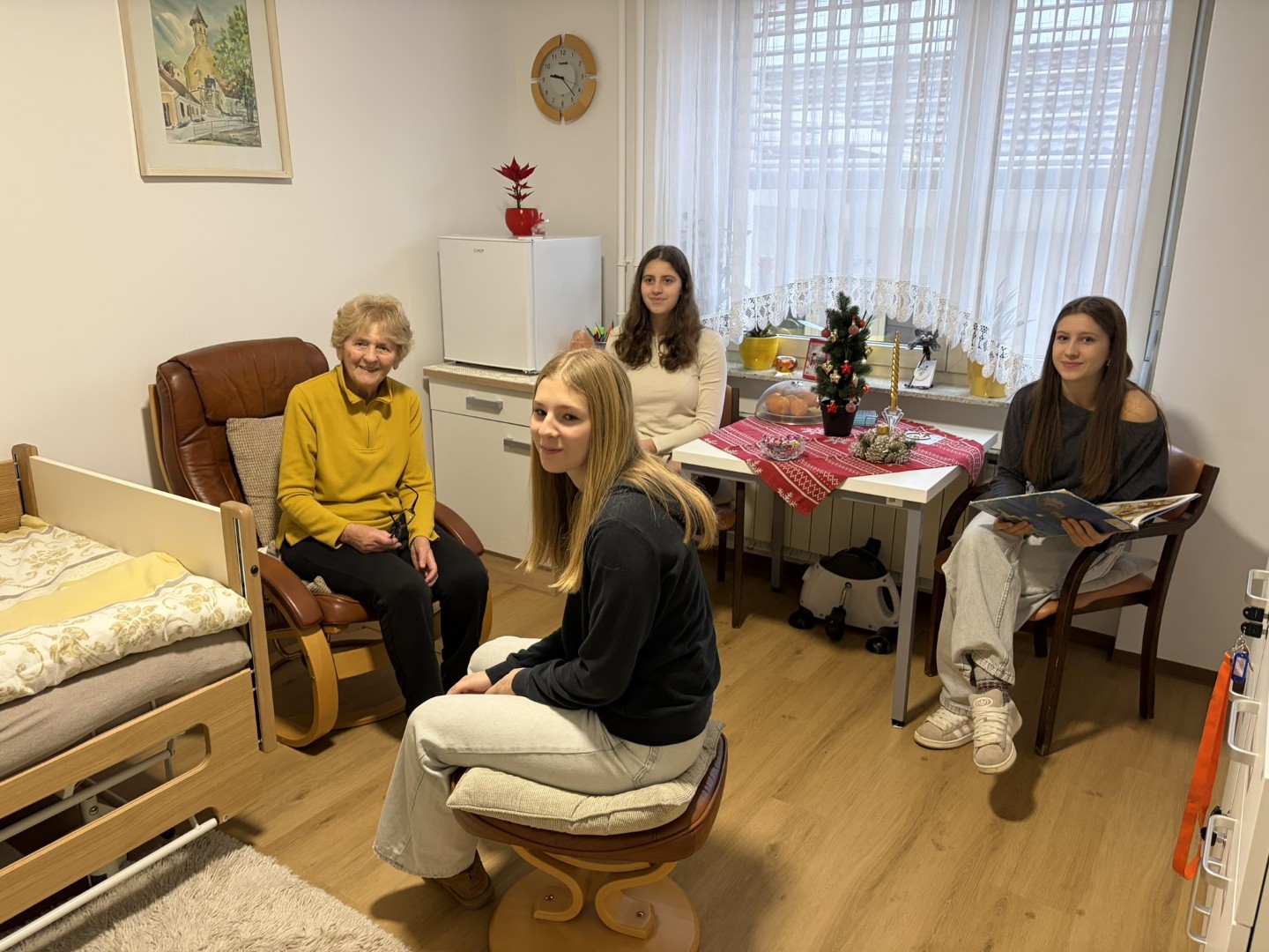 Ponedeljkovo dopoldne je bilo pri nas prav posebno. Obiskali so nas učenci Osnovne šole Olge Meglič, ki so nam po sobah prebirali čudovite božične zgodbe in v naš dom prinesli toplino ter praznično veselje. Ob prijetnem klepetu smo kasneje obujali spomine na božične praznike nekoč ter jih primerjali s prazniki danes.