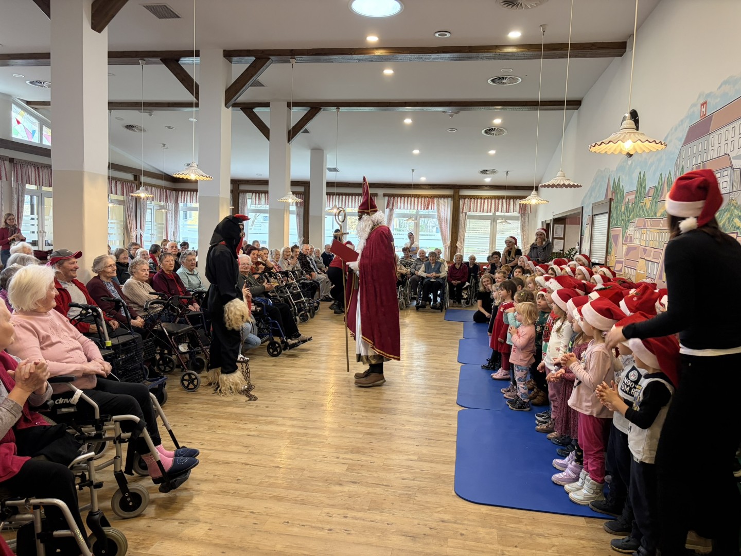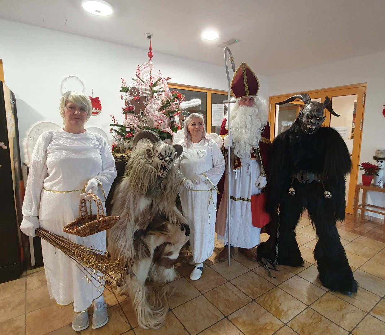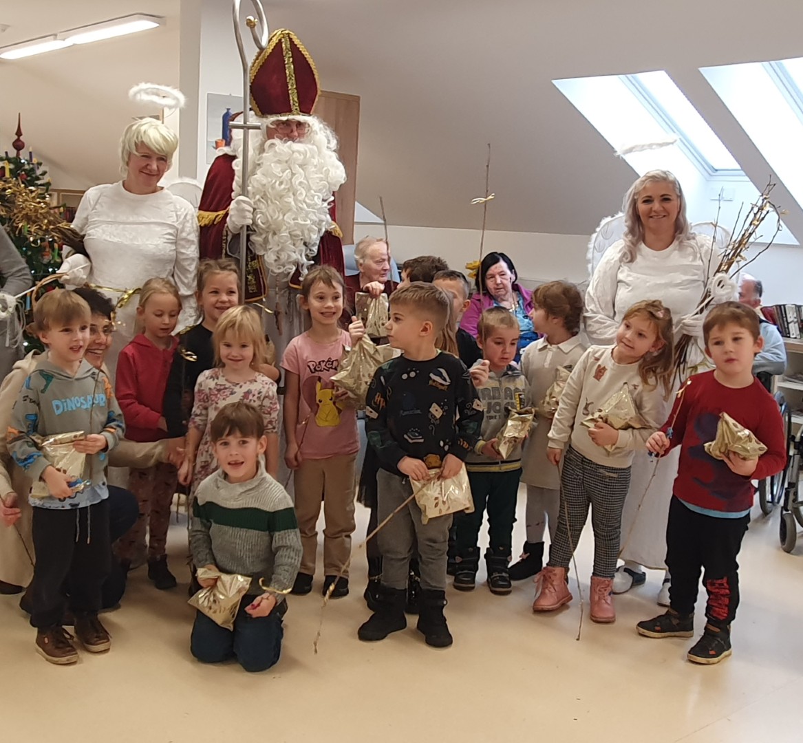 V petek, 5. 12. 2025, je našo enoto obiskal prvi dobri mož Miklavž skupaj s svojimi angelčki in pridnimi hudički. S seboj so prinesli dobro voljo, nasmehe in trenutke topline, naše stanovalce pa so razveselili z drobnimi darili. 🎁✨