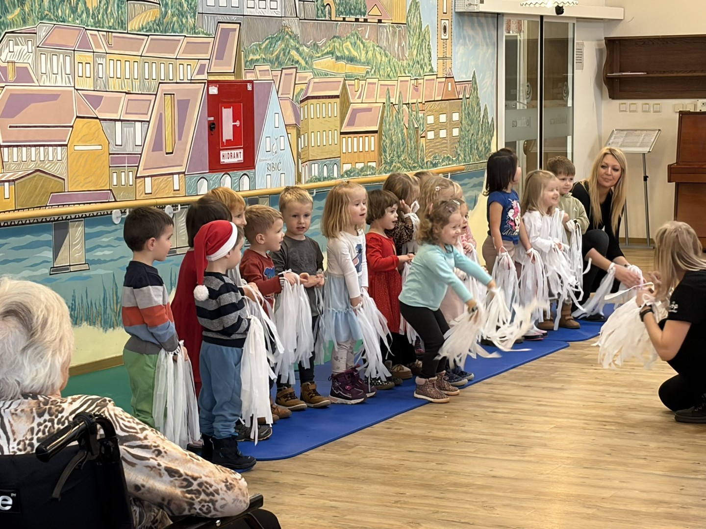 V petkovem dopoldnevu so nam otroci iz vrtca Spominčica polepšali dan s čudovitimi nastopi. Z veselimi pesmicami in plesom so nam pričarali praznično vzdušje ter na obraze privabili številne nasmehe.