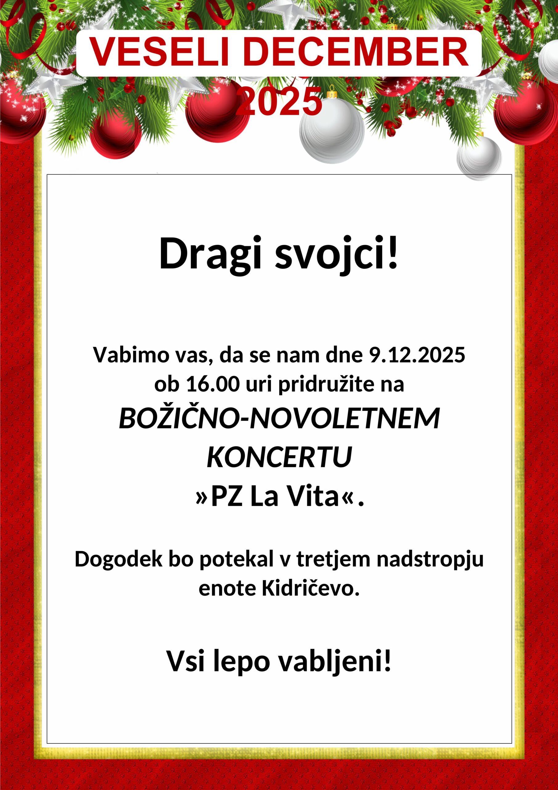 sreda, 10.12.2025 četrtek, 11.12.2025 petek, 12.12.2025 |