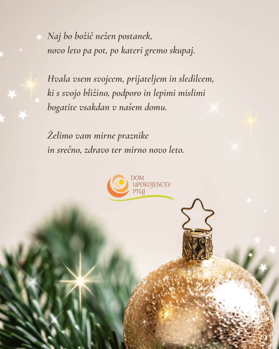 V decembrskem prazničnem času je prijetno brati besede hvaležnosti svojcev. Prijazna beseda nam poboža dušo in da zagon za nadaljnje delo. Hvala gospe Vesni in njeni sestri za prijazno gesto.