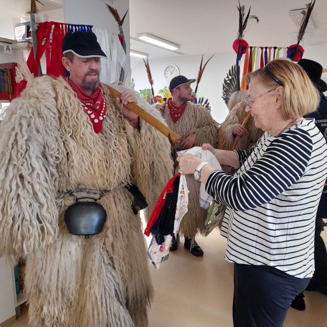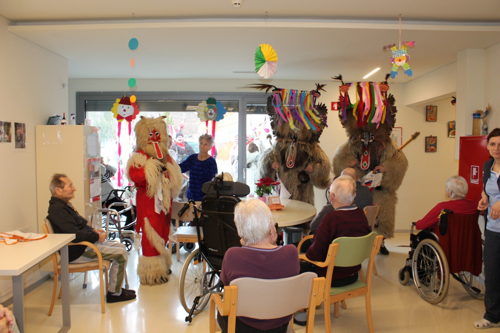 Zaključek pusta je bil zelo pester, barvit in razigran. Že zjutraj se je po enoti vil vonj po krofih, ki so jih pripravljale naše pride kuharice. Pustno druženje so nam s pesmijo popestrili muzikanti in koranti iz etnografskega društva Koranti Hajdina. Ogledali smo si tudi povorko otrok iz osnovne šole in vrtca Juršinci ter uživali v plesnem nastopu pustnih mask-mušnic iz Kulturno- etnografskega društva Juršinci. Vsem, ki ste prispevali k čudovitemu pustnem vzdušju se iskreno zahvaljujemo.