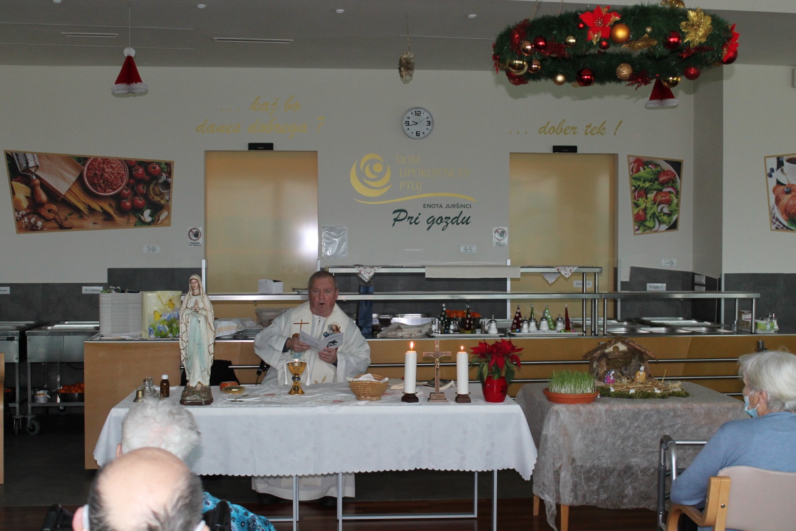 24.12. je polnočno mašo za naše stanovalce in svojce daroval župnik Anton Pačnik. Stanovalci so na začetku maše od Župnijske Karitas Kidričevo prejeli elektronske svečke. Vzdušje pri maši je bilo res čarobno.