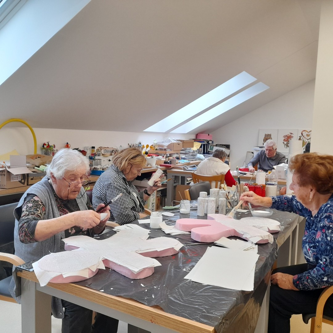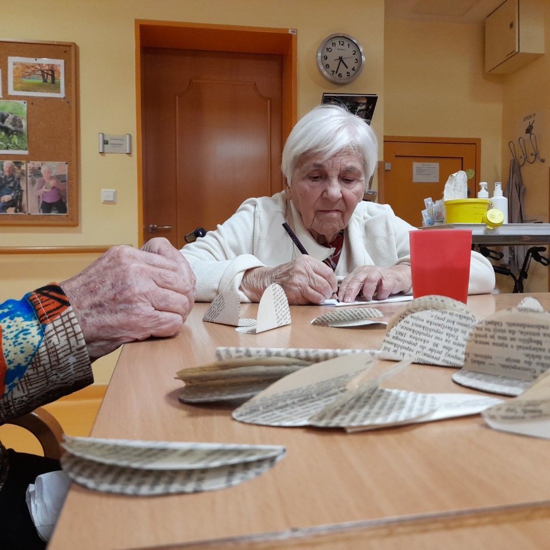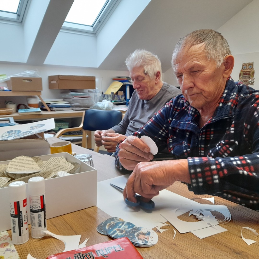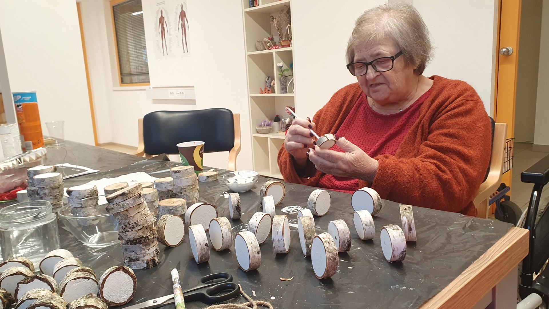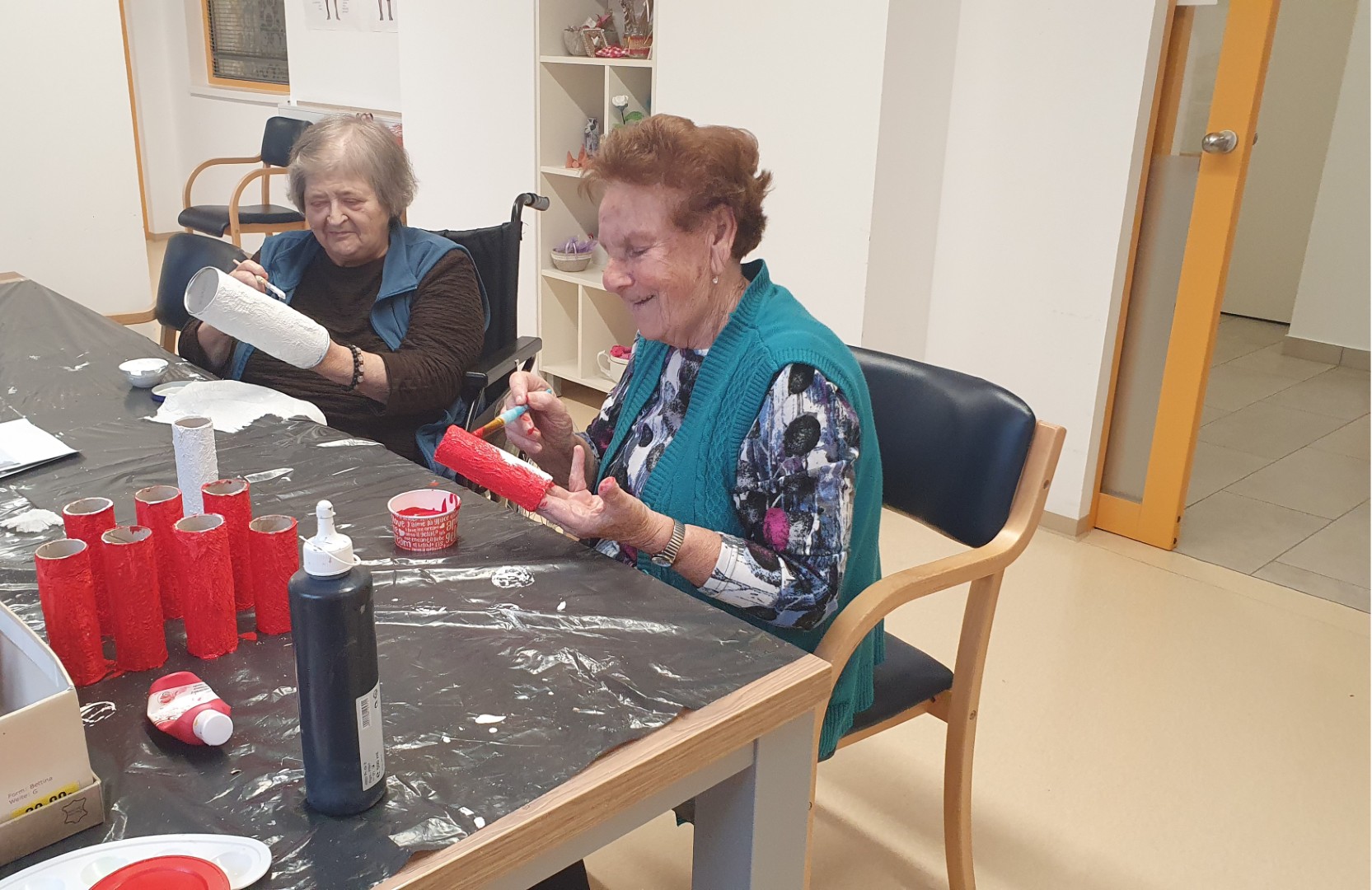 Na varovanem oddelku smo v začetku decembra zavihali rokave in pričeli z ustvarjanjem. Z zagonom smo naredili božičkove kapice iz jajčnih škatel in bombone, s katerimi smo okrasili božično drevo na oddelku. Delo je bilo lažje, saj smo kot donacijo dobili velik komplet materiala in orodij za ustvarjanje od podjetja Kopija - nova, družba za trgovino, storitve in izobraževanje d.o.o. .
