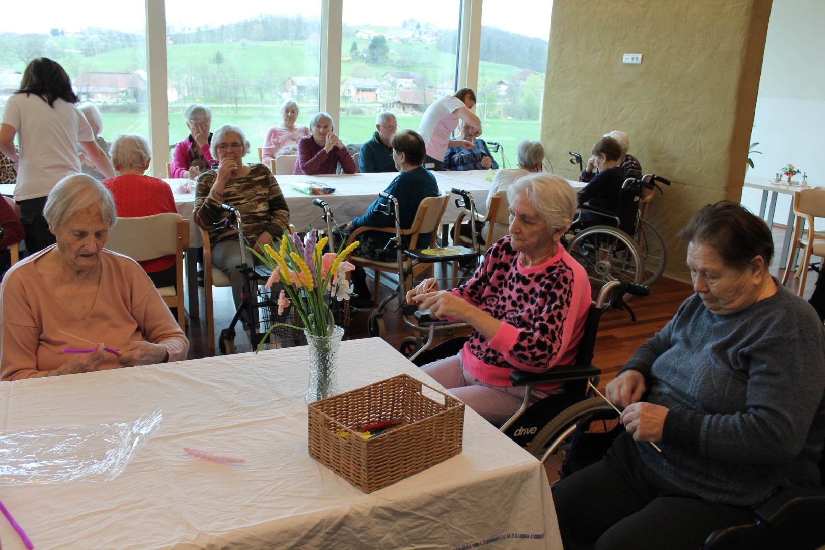 Četrtkovo dopoldne smo posvetili vsem materam, babicam in ženskam ter v ta namen pripravili prireditev ob materinskem dnevu. Program so s prisrčnim nastopom otvorili otroci iz Vrtca Ptuj, enote Spominčica, ki so nas razveselili s svojo igrivostjo in iskrenostjo. Sledil je nastop naše pevske skupine, ki je z izbranimi pesmimi ustvarila prijetno vzdušje, ob katerem smo z veseljem zapeli tudi skupaj. Dogodek je dodatno obogatil literarni krožek s tremi recitacijami, med katerimi je bilo tudi avtorsko delo.