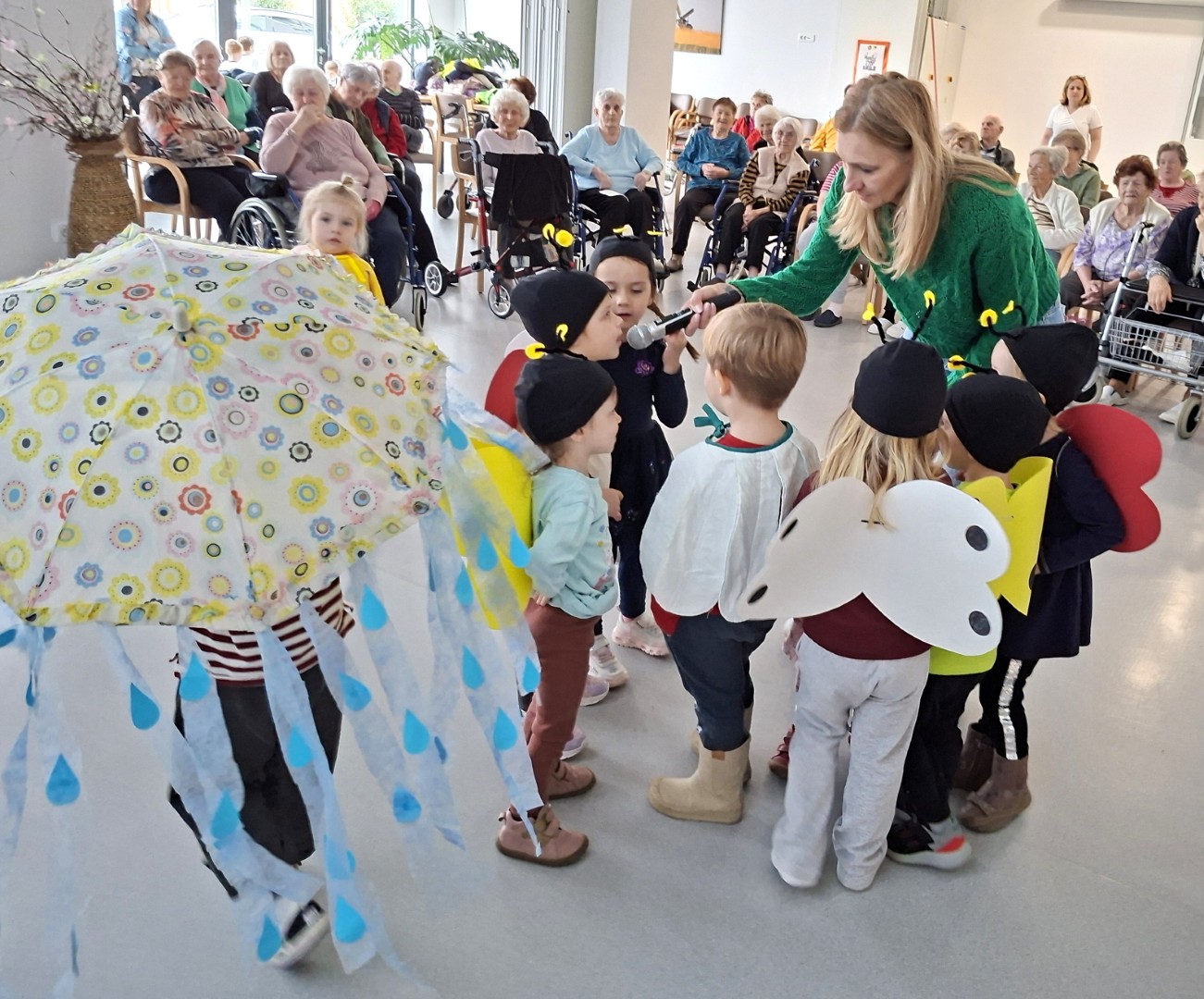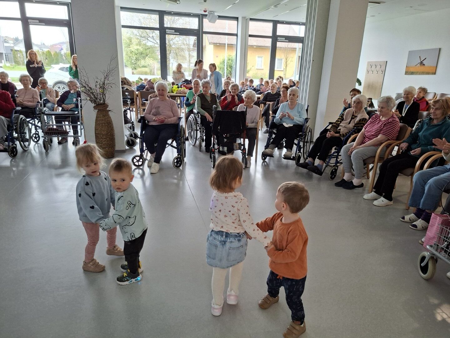 1. aprila 2026 so nas razveselili otroci iz vrtca Trobentica. Obiskali so nas veliki in mali, ki so s svojim nastopom pričarali pravo pomladno vzdušje.