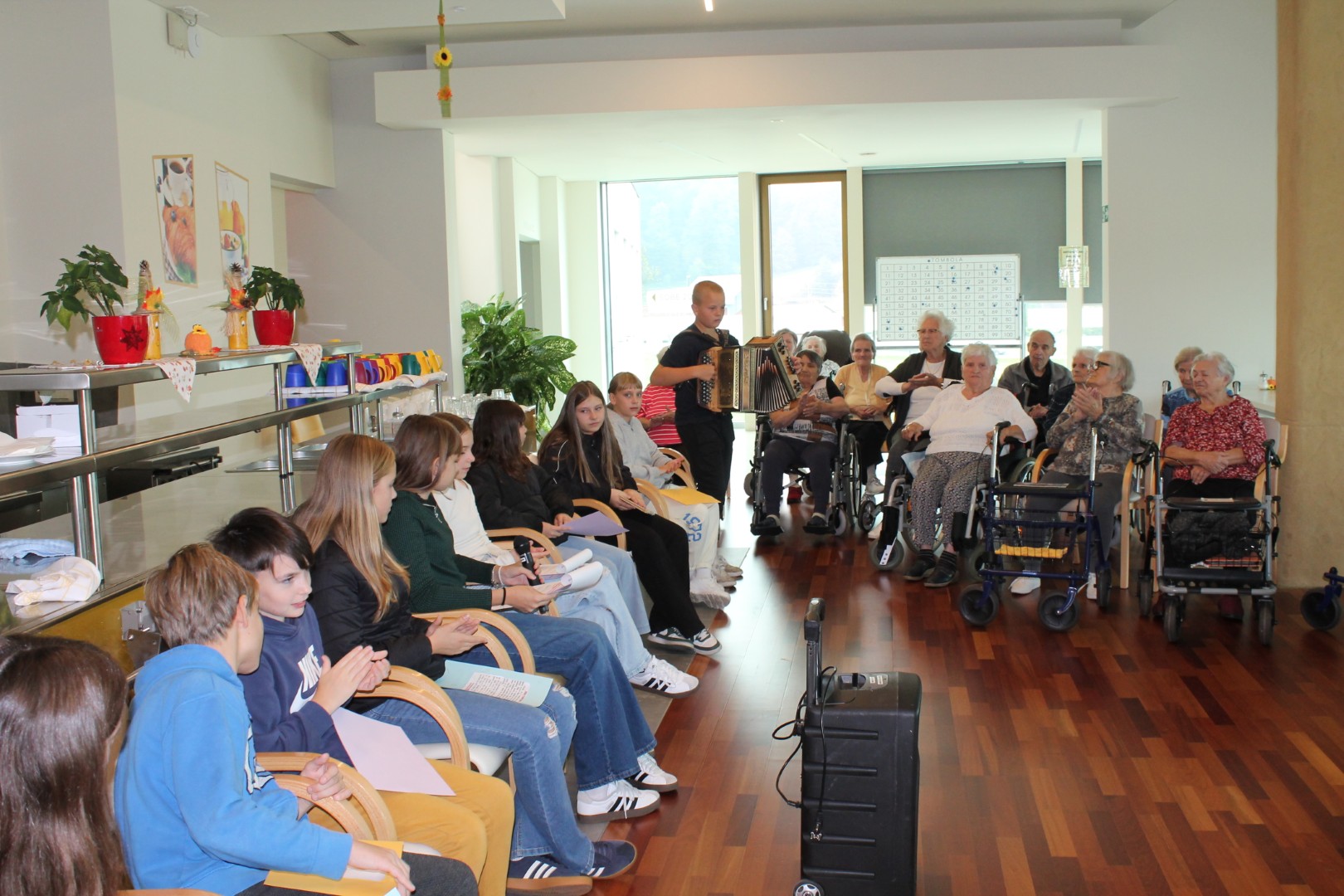Vsako leto med 8. septembrom (mednarodni dan pismenosti) in oktobrom (teden otroka) poteka Nacionalni mesec skupnega branja. Ob tej priložnosti smo ponovno združili moči z učenci iz osnovne šole Juršinci in skupaj prebirali čudovite basni ter ob zvokih harmonike zapeli nekaj znanih ljudskih pesmi.