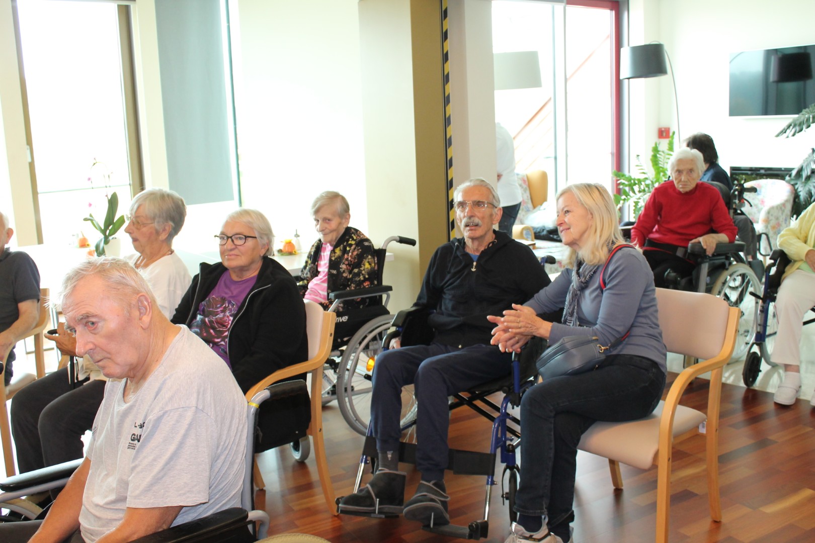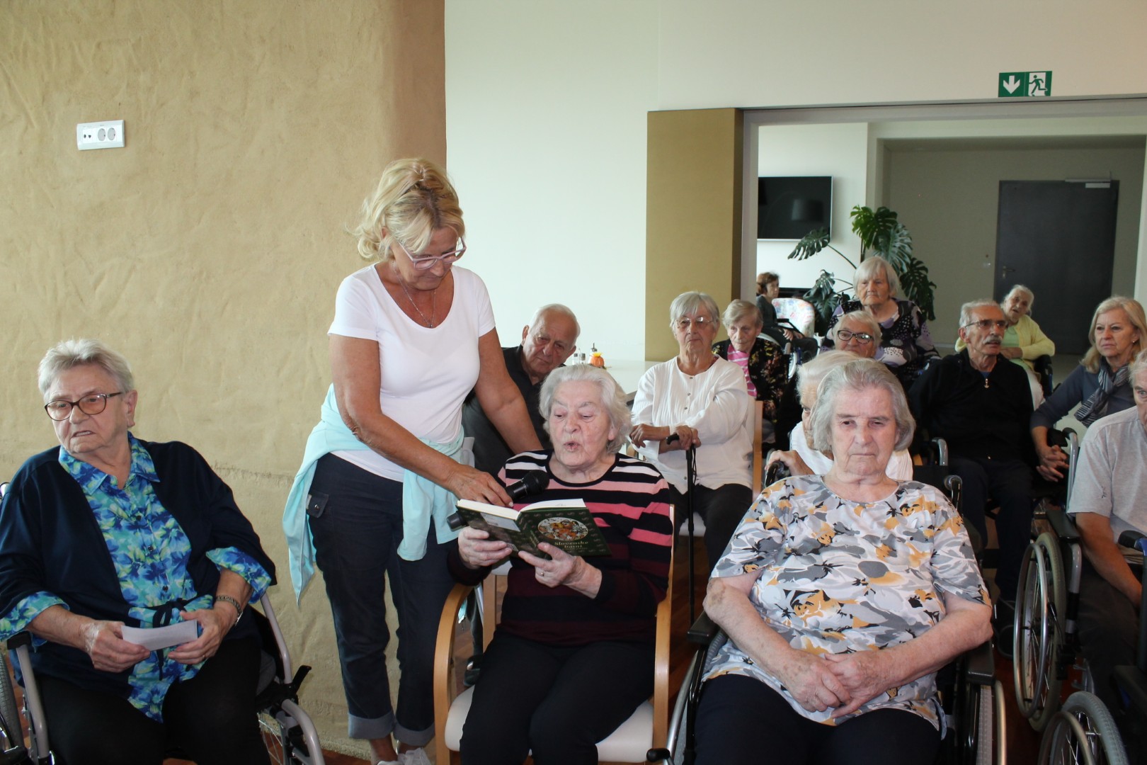 Ker je včeraj bil tako imenovani Svetovni dan Alzheimerjeve bolezni smo se v podporo vsem, ki se srečujejo s to boleznijo danes s svojci in stanovalci osebnega spremljanja odpravili na tako imenovani "Sprehod za spomin". Letos smo ga obogatili s kognitivnimi postajami in po poti še dodatno razmigali naše sive celice. Prijetno druženje smo sklenili zunaj pred domom ob kavici in sladkih dobrotah. Naše druženje so s pesmijo obogatili tudi otroci iz vrtca.
