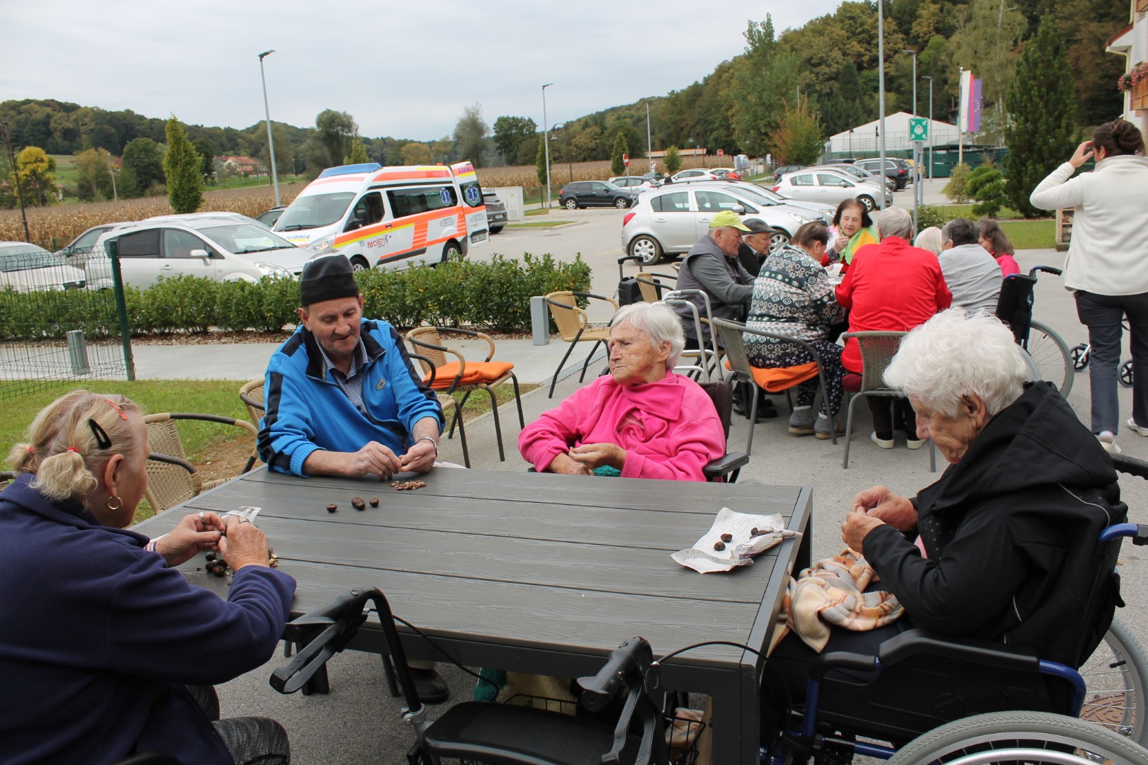 Zadišalo je po kostanju. Da smo se lahko poveselili in posladkali ob tej jesenski dobroti gre zahvala prostovoljcem Rdečega križa Juršinci, ki so tudi letos nabrali kostanj, prinesli odličen mošt in naše brbončice razvajali še s slastno potico.