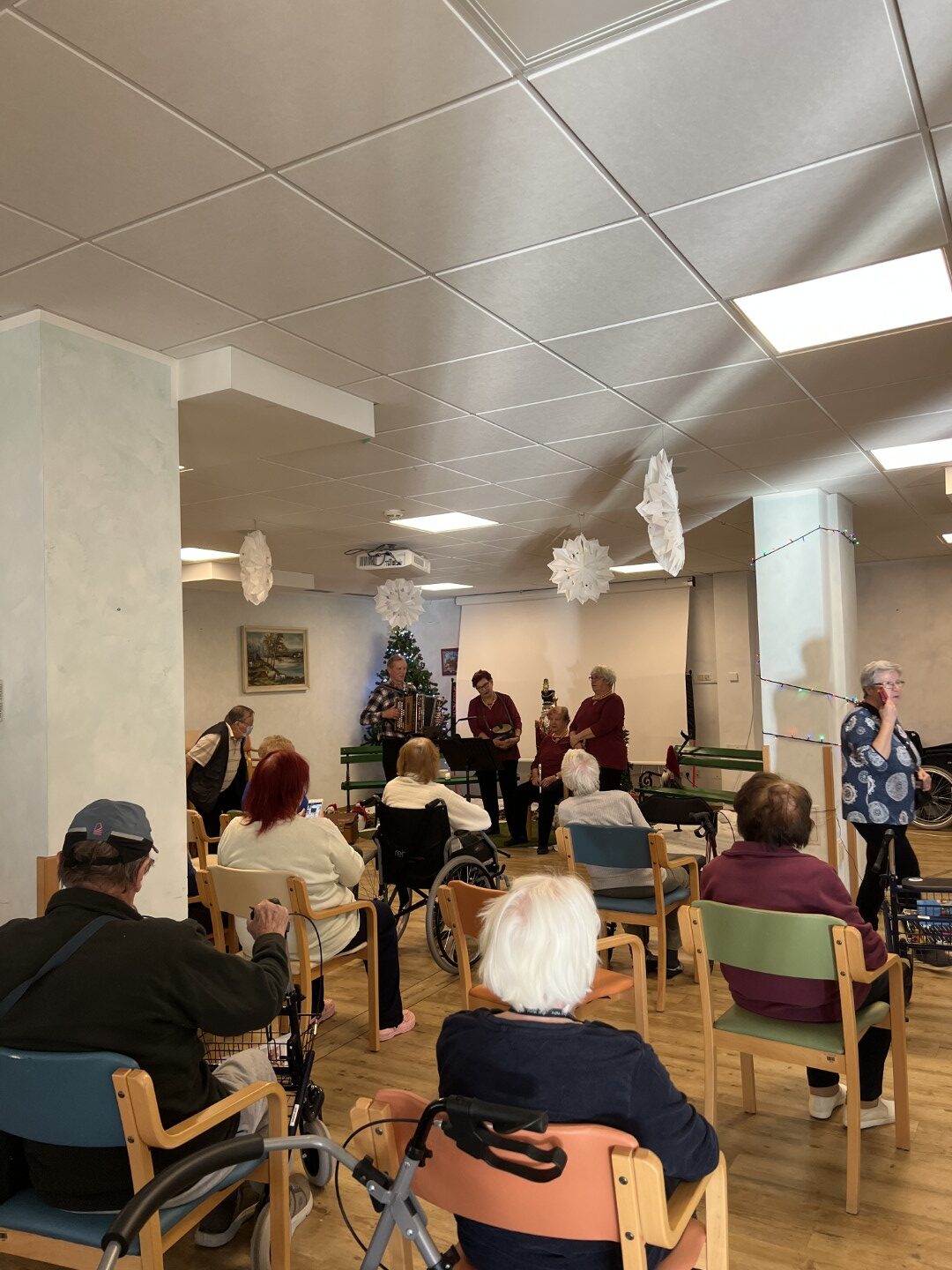 Ponedeljek, 8. 12. 2025, je našim stanovalcem prinesel pravo praznično toplino. Obiskali so nas čudoviti pevci iz Ptuja – skupina Rožmarin, ki je s svojimi domačimi pesmimi napolnila naš dom z nežnostjo, nostalgijo in iskreno radostjo.