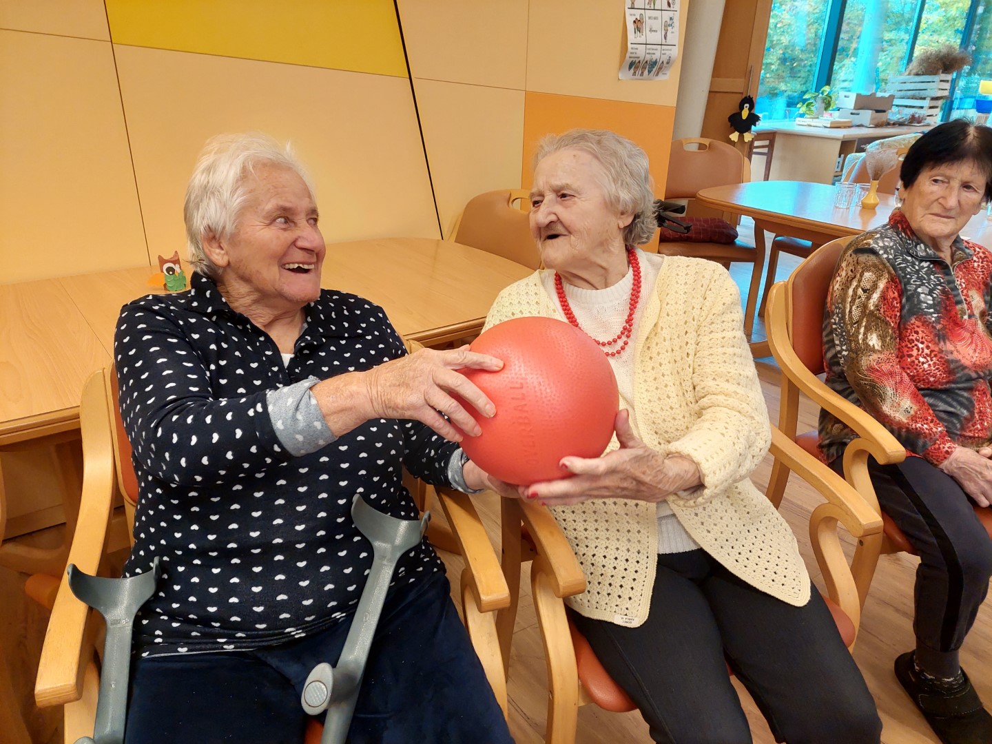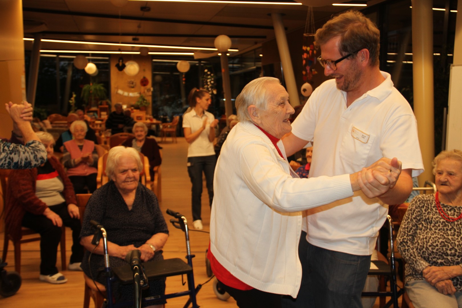 Ponovno smo plesali in prepevali ob zvokih harmonike našega muzikanta gospoda Janka. Vsak zadnji četrtek v mesecu imamo v enoti veselico, kot smo ta druženja poimenovali. Žena stanovalca mi je povedala: »Sem si označila na koledar, da ne bom pozabila priti. Z možem sva vedno rada plesala. Prva sva šla na plesišče in zadnja dol. Pridem, da zapleševa, dokler se bo še dalo.« Plesali smo skoraj vsi. Razvilo se je prav prijetno vzdušje. Veselimo se že zadnjega četrtka v novembru.