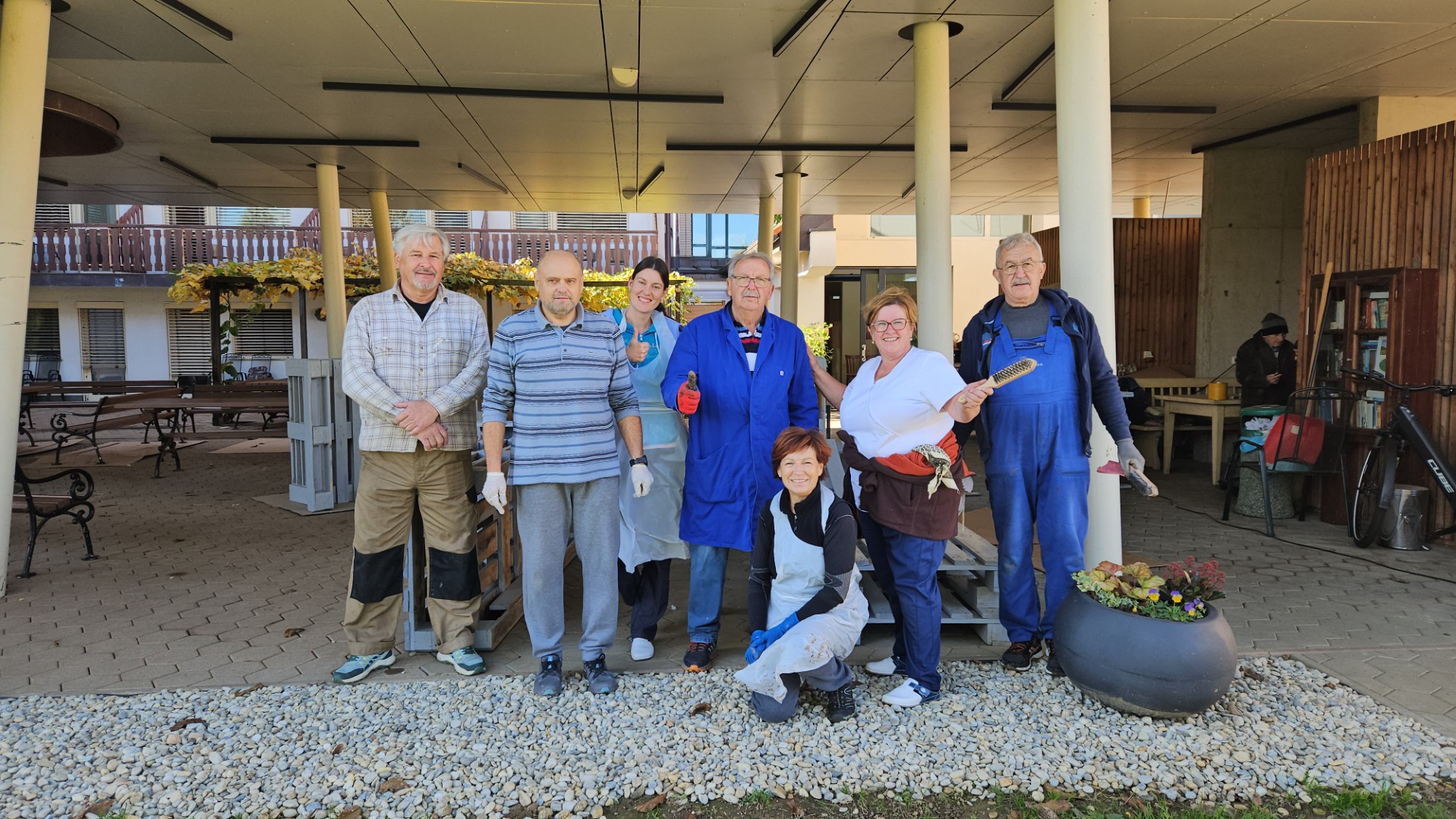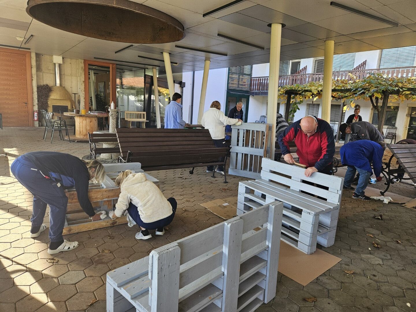 Delovna akcija barvanja klopi in miz ter sedežne garniture narejene iz palet je dobro uspela. Organizirali smo jo iz danes na jutri. Velika zahvala gre svojcem; Miranu, Dragu, Ivanu, Sonji, Janku, Marjanu in vsem stanovalcem ter zaposlenim, ki so sodelovali. Lepše zunanje garniture bodo zagotovo polepšale druženje svojcev in stanovalcev na obiskih.