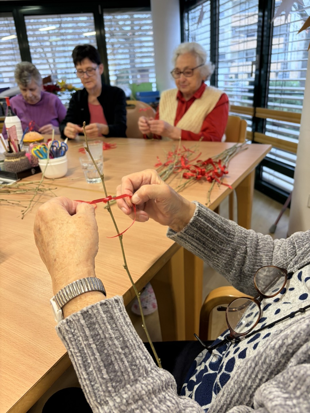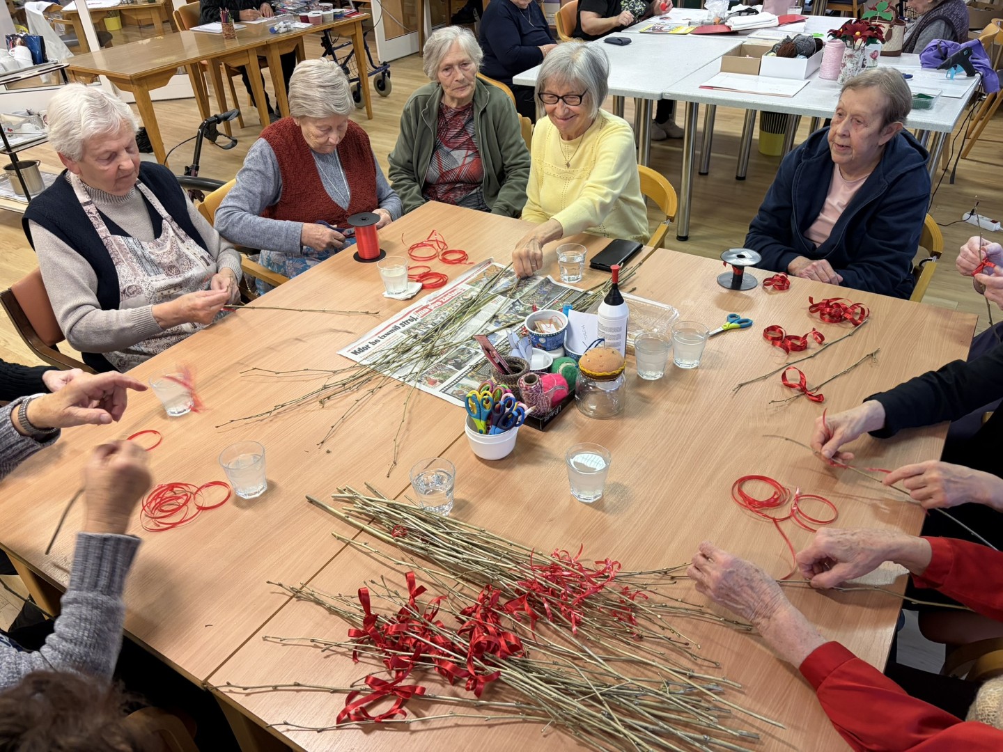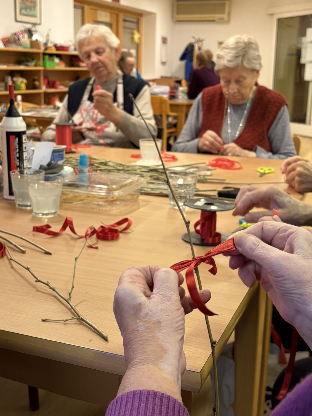 V prazničnem vzdušju smo skupaj s stanovalci izdelovali Miklavževe šibe, ki bodo krasile naše prostore in v dom prinesle toplino decembrskih dni. Ob ustvarjanju smo obujali spomine na stare običaje ter uživali v prijetnem druženju.