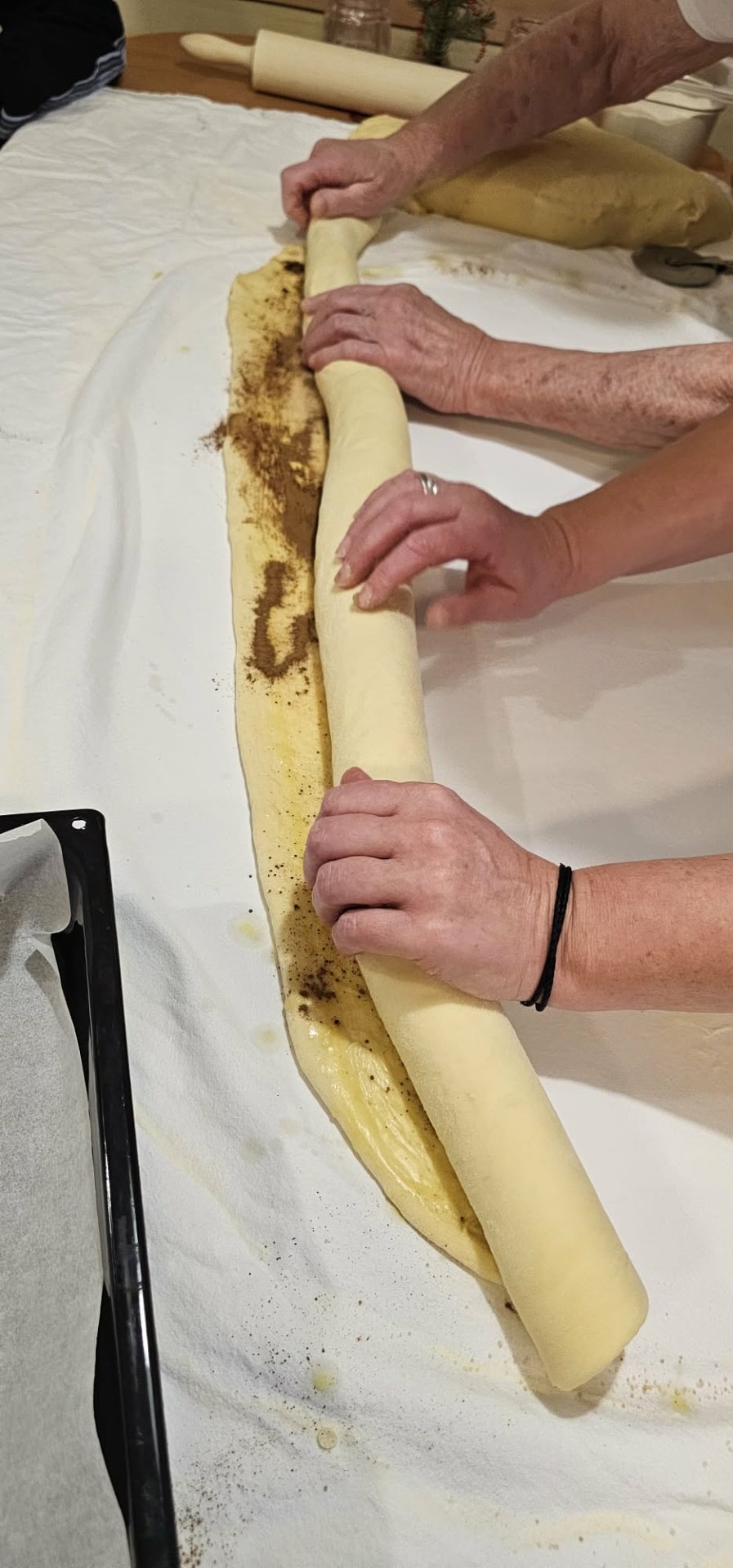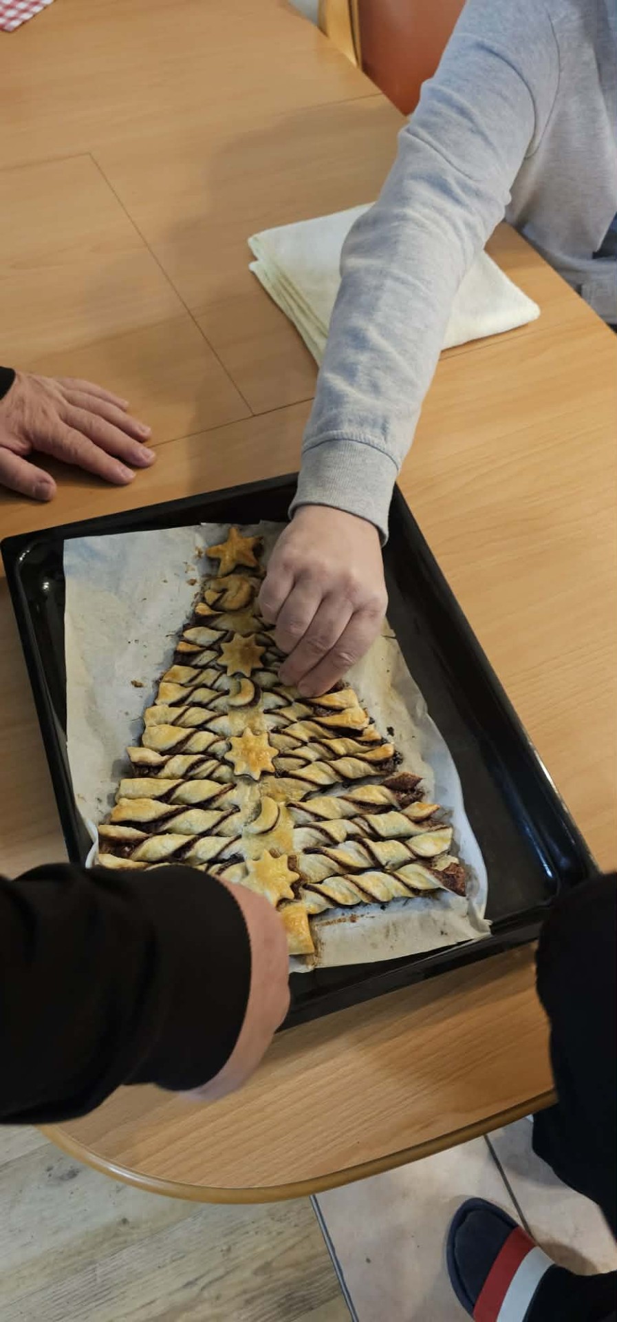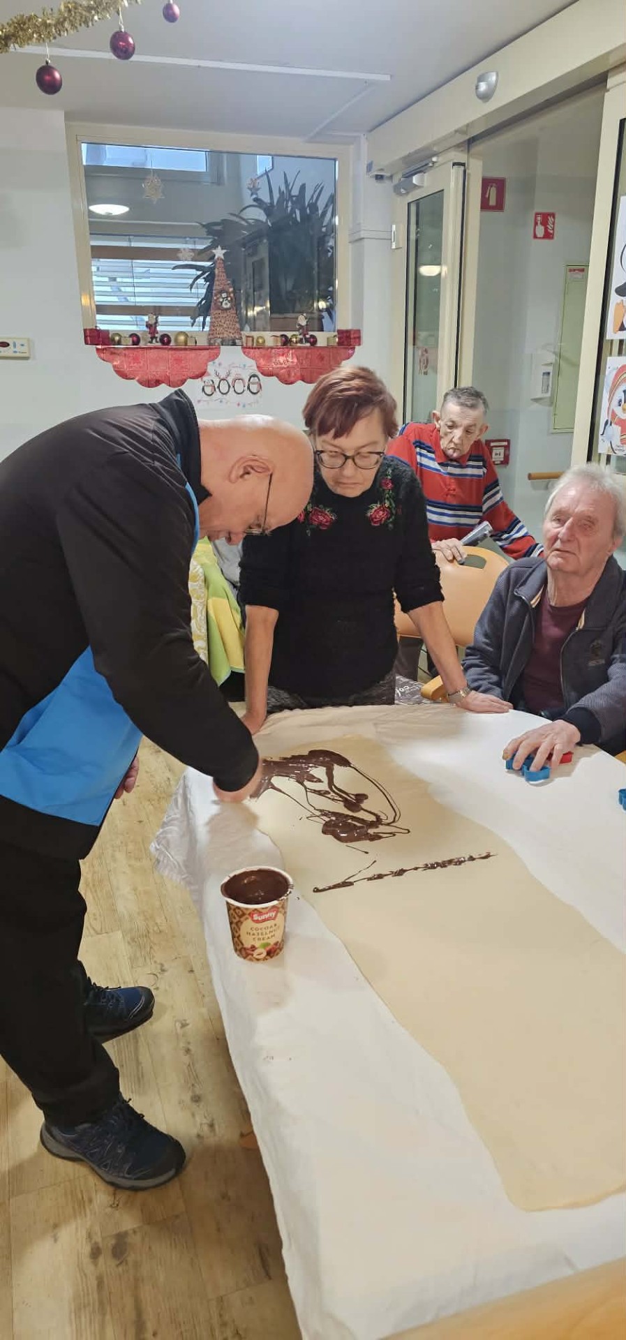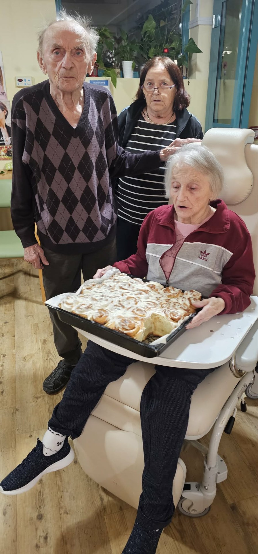 V prijetnem in dišečem vzdušju smo skupaj s stanovalci zavihali rokave in se lotili peke cimetovih rolic. Ob gnetenju testa, posipanju cimeta ter nestrpnem čakanju pred pečico ni manjkalo pogovorov in dobre volje. Sveže pečene rolice so napolnile prostor z omamnim vonjem in bile na koncu tudi sladka nagrada za naš skupni trud.