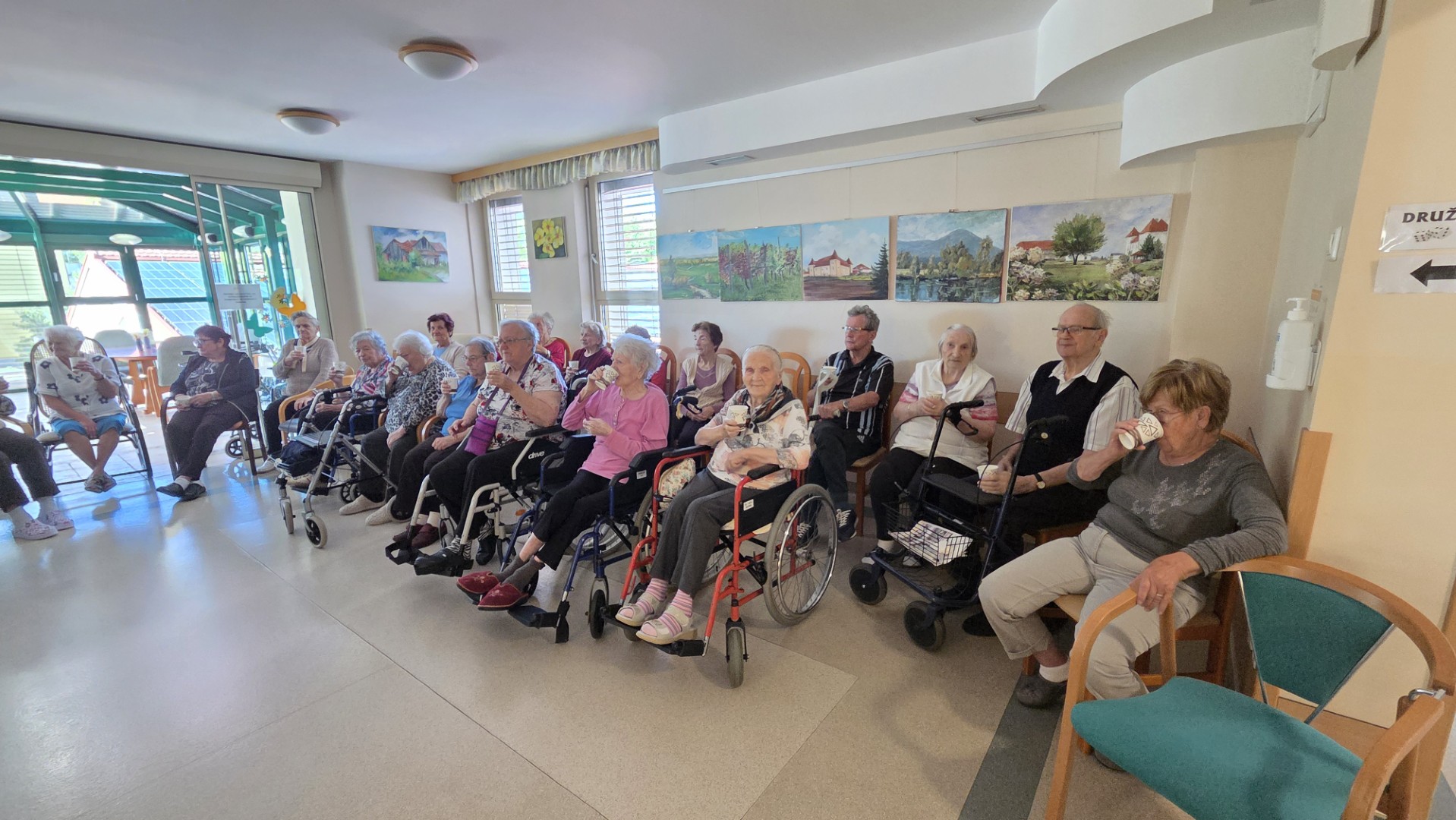 Petkovo dopoldne so nam polepšali člani Društva Steza, ki so skupaj s svojimi gosti iz Nemčije pripravili prijeten glasbeni nastop. Z ubranim petjem in zvoki kitare so ustvarili toplo in sproščeno vzdušje, ki je navdušilo stanovalce. Po nastopu so se z veseljem podružili s stanovalci, ob tem pa ni manjkalo smeha in prijetnih pogovorov.