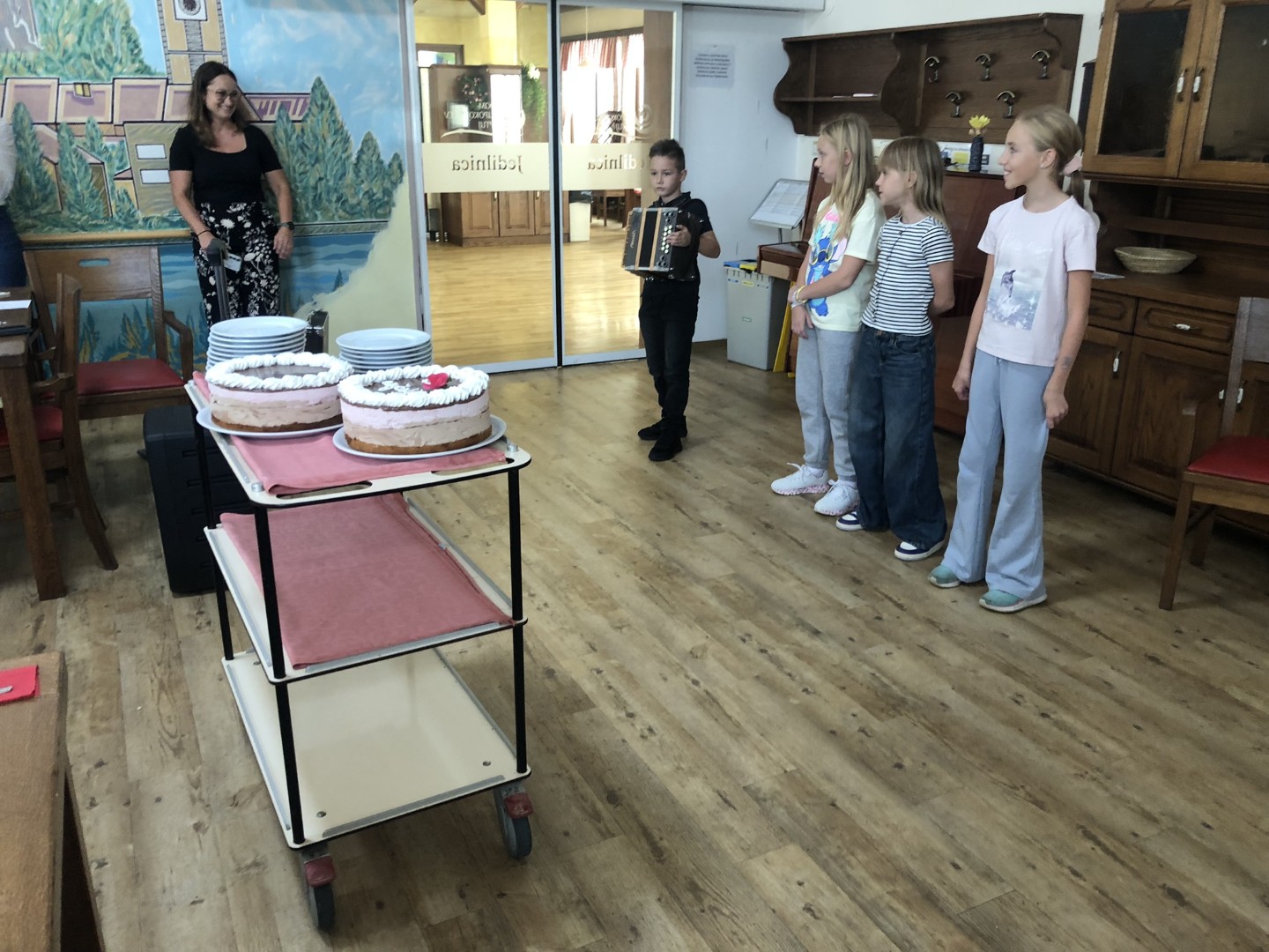 V sredo (17.9.) popoldne smo se zbrali stanovalci, rojeni v septembru, in skupaj nazdravili. Praznovanje so popestrili učenci Osnovne šole Ljudski vrt s svojimi glasbeno-plesnimi nastopi. Za še bolj veselo vzdušje je poskrbel komaj 7-letni harmonikar. Na koncu pa smo se posladkali s slastno torto, ki so jo pripravile naše kuharice.