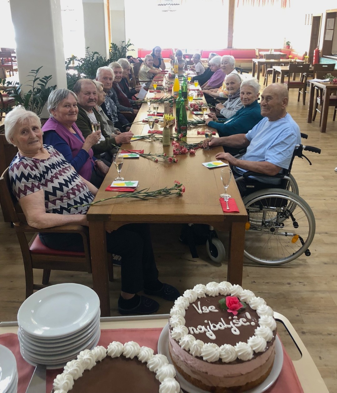 V našem domu smo obeležili prav posebno priložnost – praznovanje 100. rojstnega dne naše stanovalke, gospe Krois Ljudmile, na enoti D. Ob tej častitljivi obletnici so zaposlene pripravile skrbno izbrano praznično dekoracijo, ki je ustvarila toplo in prijetno vzdušje. Slavljenka je bila ves dan nasmejana in polna pozitivne energije. Dogodka se je udeležilo veliko njenih sorodnikov, ki so prišli od blizu in daleč ter s svojo prisotnostjo pripomogli k nepozabnemu praznovanju tega izjemnega življenjskega jubileja.