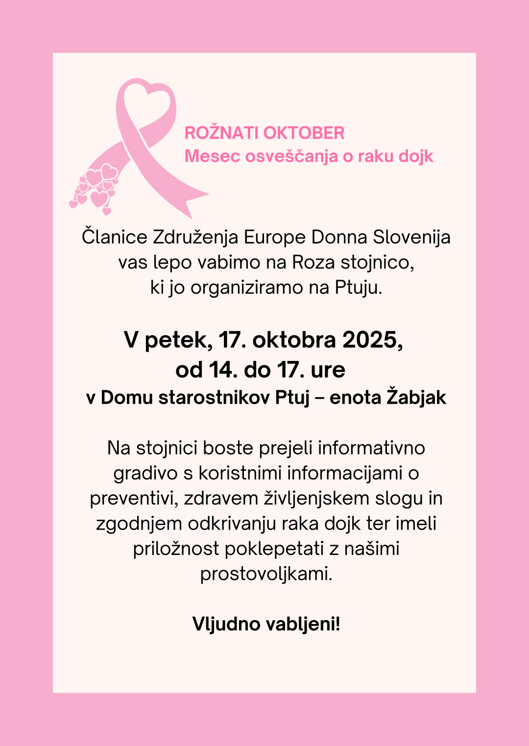 - v ponedeljek, 27.10. ob 15.30 uri v enoti Ptuj